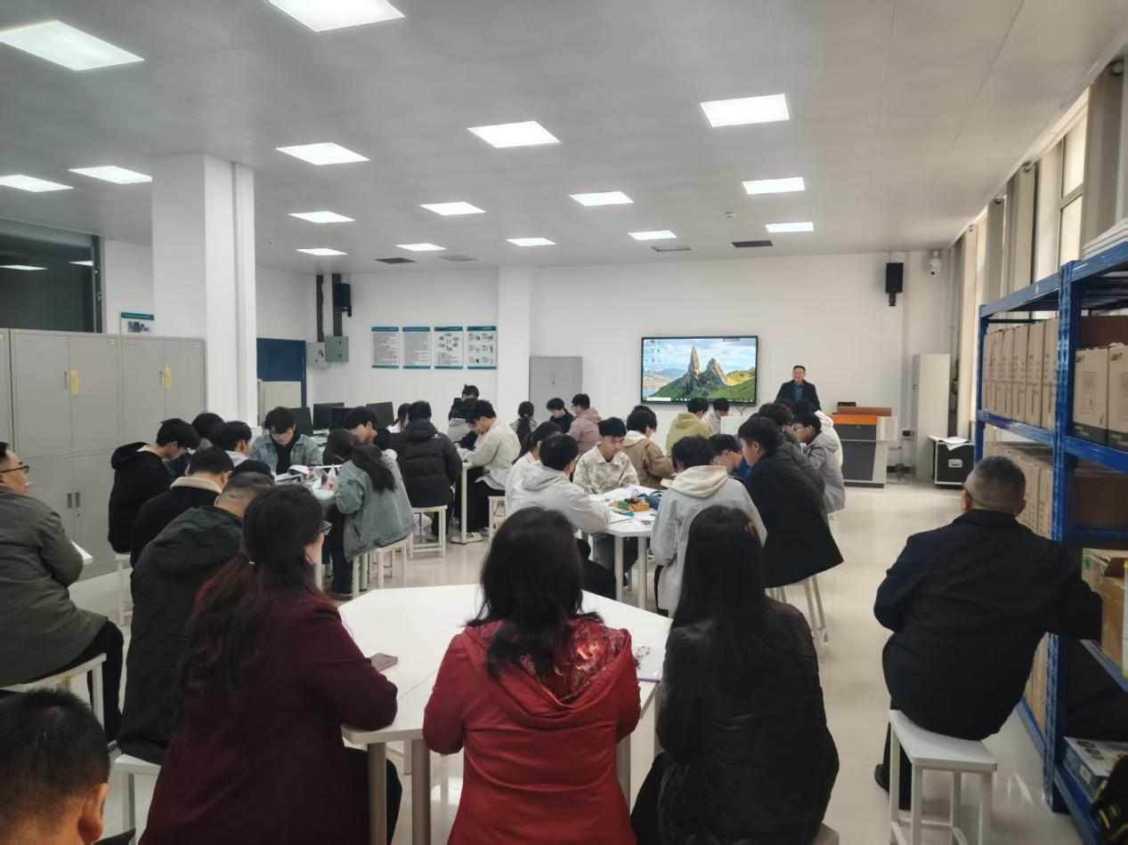 随后,考察团转赴山东淄博职业技术大学,重点调研中德智能制造学院、汽车与低空飞行器学院的建设成效。考察团沉浸式体验了集教学、实训、研发于一体的“真实工作场景化”学习环境,该校将企业实际项目融入课程体系、以岗位职业标准反哺教学改革的设计思路,让考察团成员深受启发。此次参访进一步明晰了“课堂革命”与产教融合深度结合的实践方向,为我校专业建设和人才培养提供了宝贵经验做法。