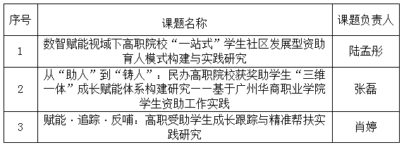 根据《关于开展2026年广东省高校学生资助工作课题研究的通知》要求,学校组织了本次申报工作。经教师自主申报、资质审查、专家评审等环节,拟推荐以下3个项目,现将名单公示如下:
